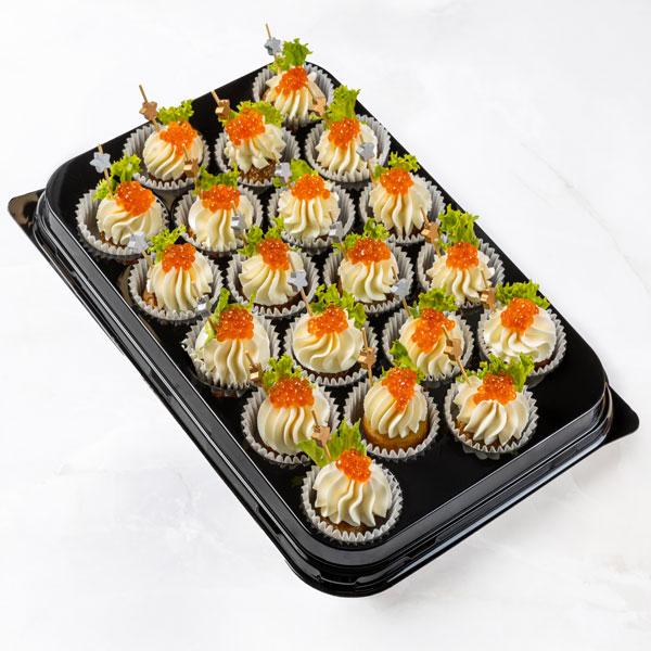 Картофель-бейби, отваренный до идеальной мягкости, служит великолепной основой для сливочного сыра "Креметте", который придаёт каждому кусочку невероятную кремовую текстуру и богатый вкус, идеально дополняется яркой и насыщенной лососевой икрой.