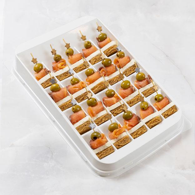 Канапе из норвежского лосося с адыгейским сыром на ржаном тосте