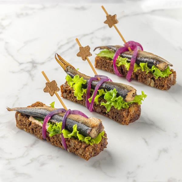Канапе со шпротами и маринованным луком