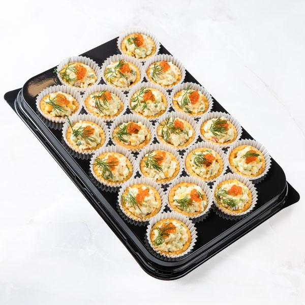 Тарталетки с крабовым салатом и красной икрой