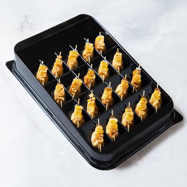Блинчики, наполненны воздушным муссом из креветок и крабовых палочек, дополненными освежающим лимонным желе. Каждый блинчик — это нежное сочетание морских деликатесов и цитрусовой свежести.