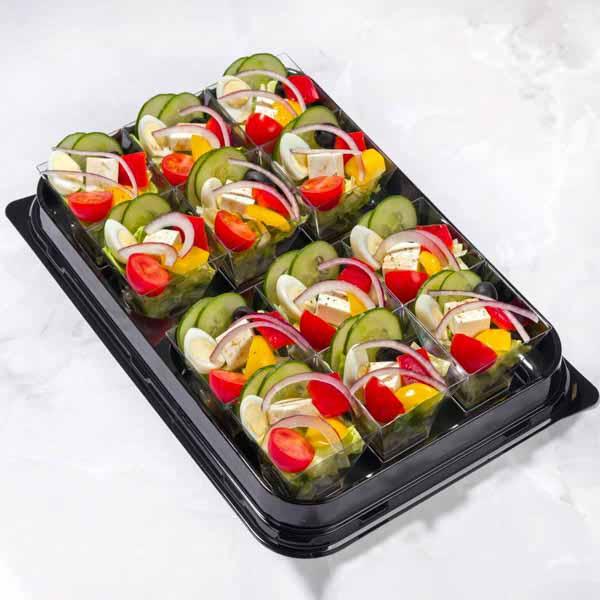 Нежный сыр "Фета" гармонично сочетается с яркими помидорами "Черри", хрустящими огурцами и сладким болгарским перцем, создавая взрыв свежести на вашем столе. Завершает этот изысканный ансамбль ароматный греческий соус с нотами чеснока и базилика.